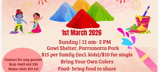 BJSM warmly invites you to our Holi 2026 Celebration in Parramatta, Sydney.